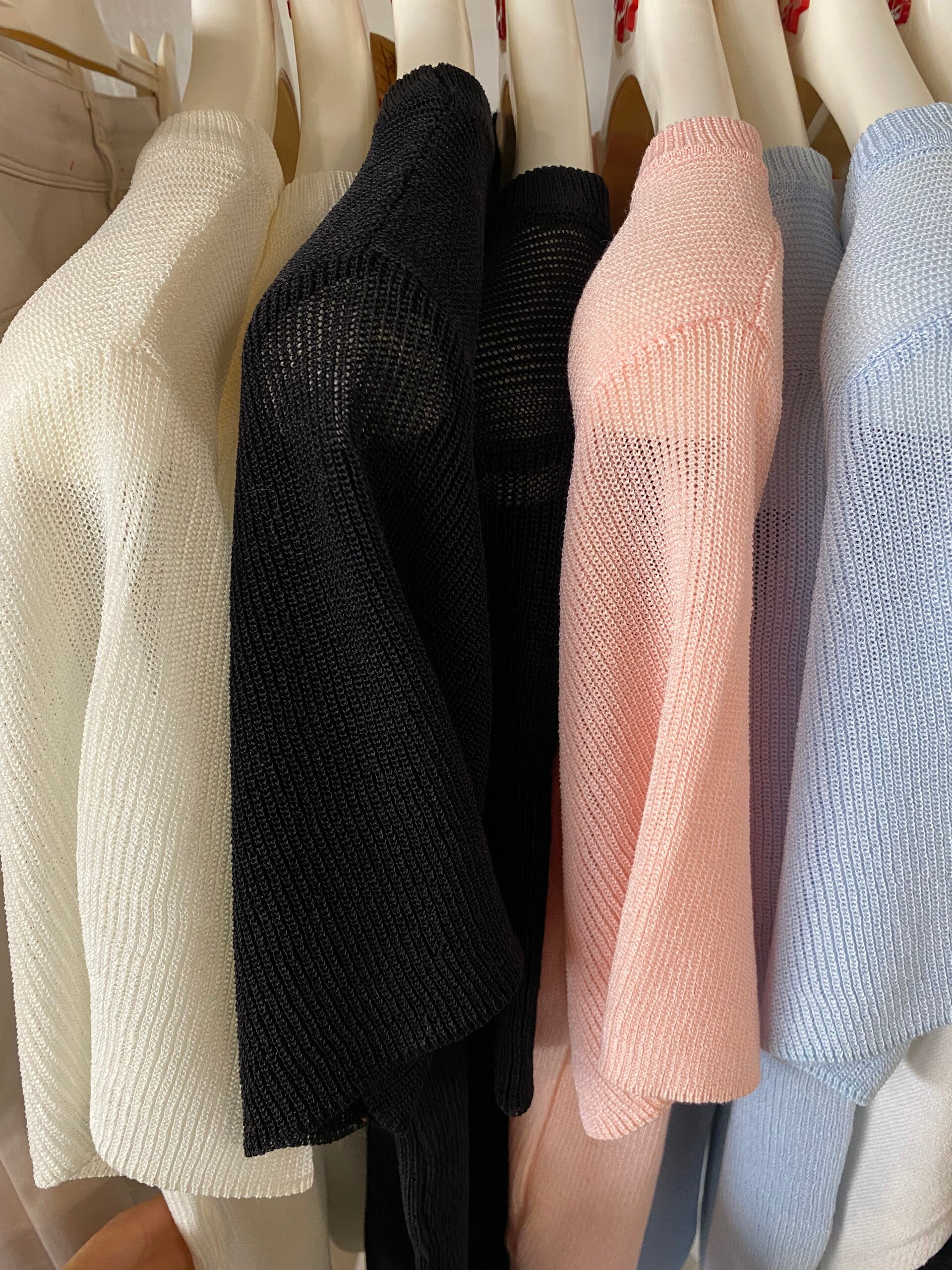 • Tessuto: Maglia ultra-leggera e leggermente semitrasparente, ideale per creare giochi di sovrapposizioni o per un look fresco e traspirante.
